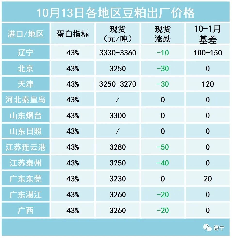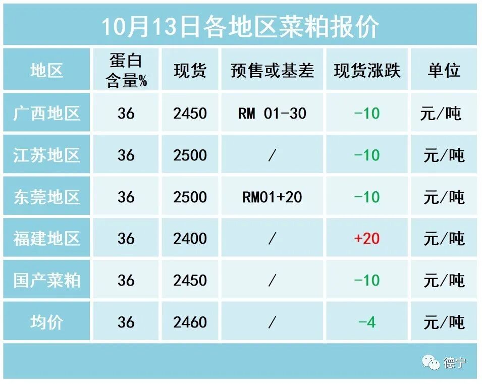 各地区10月20日菜粕报价如下: