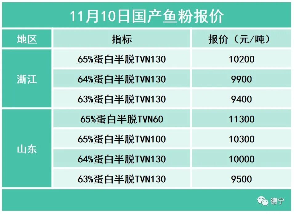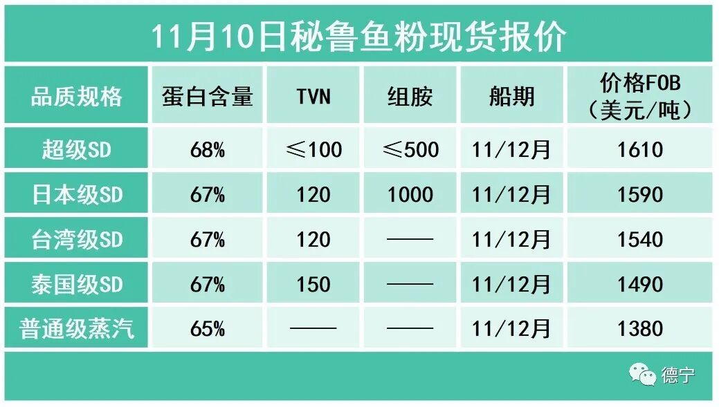 11月17日饲料原料行情:鱼粉报价下跌300元,南北豆粕价差在160元