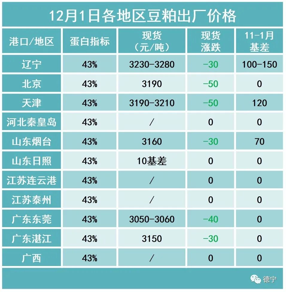 2)今日豆粕现货价格:辽宁31860-3260元,天津3100-3110元,江苏泰州未报,东莞2970-2980元,湛江3050元。