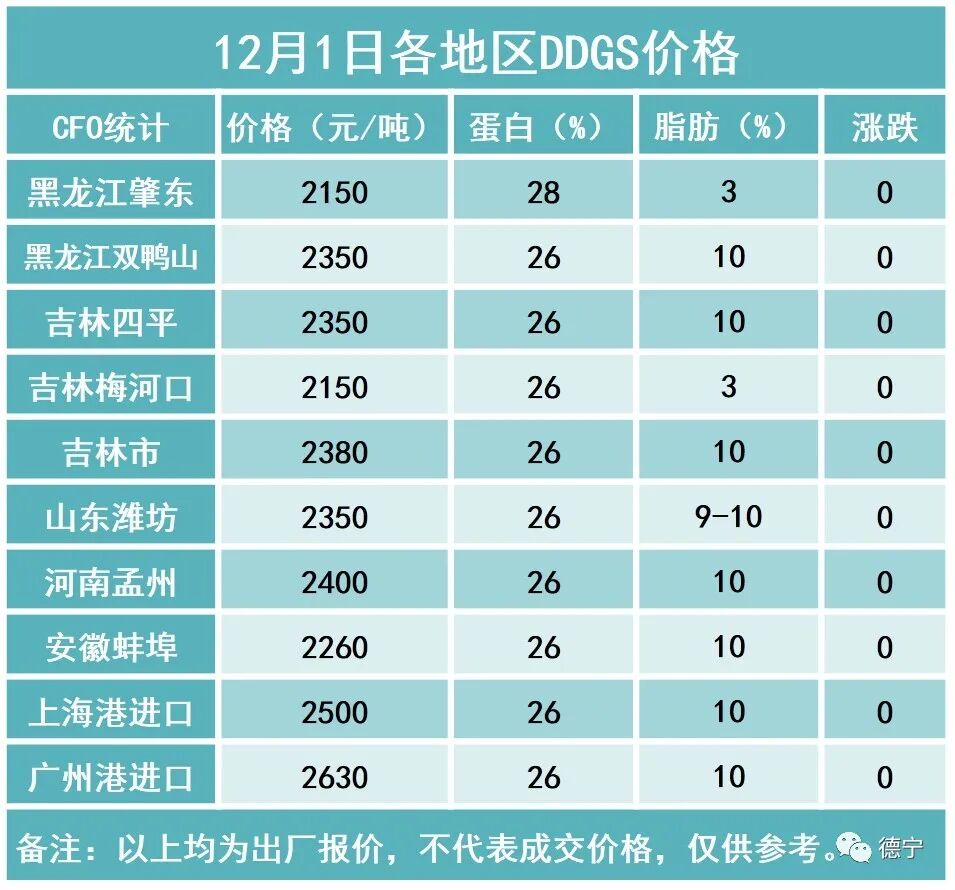 国产DDGS:东北厂家参考报价2100-2400元/吨,华北厂家参考报价2250-2400元/吨,主流港口报价2450-2600元/吨;厂家价格企稳。