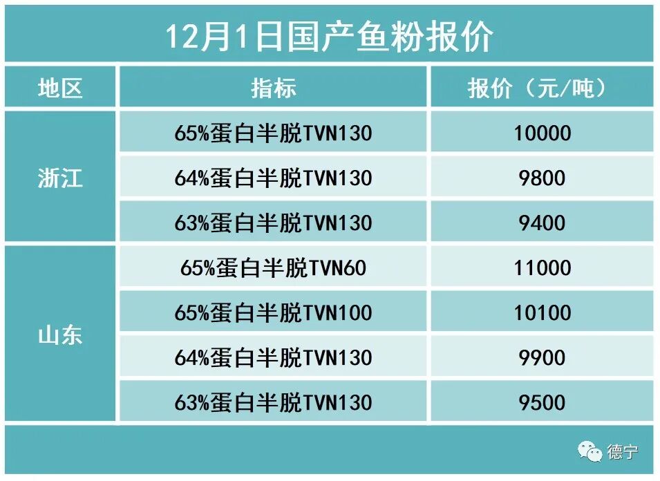 浙江地区,65/130半脱脂国产鱼粉参考报价在10000元/吨左右,64/130半脱脂国产鱼粉参考报价在9800元/吨左右,63/130半脱脂国产鱼粉参考报价在9400元/吨左右。