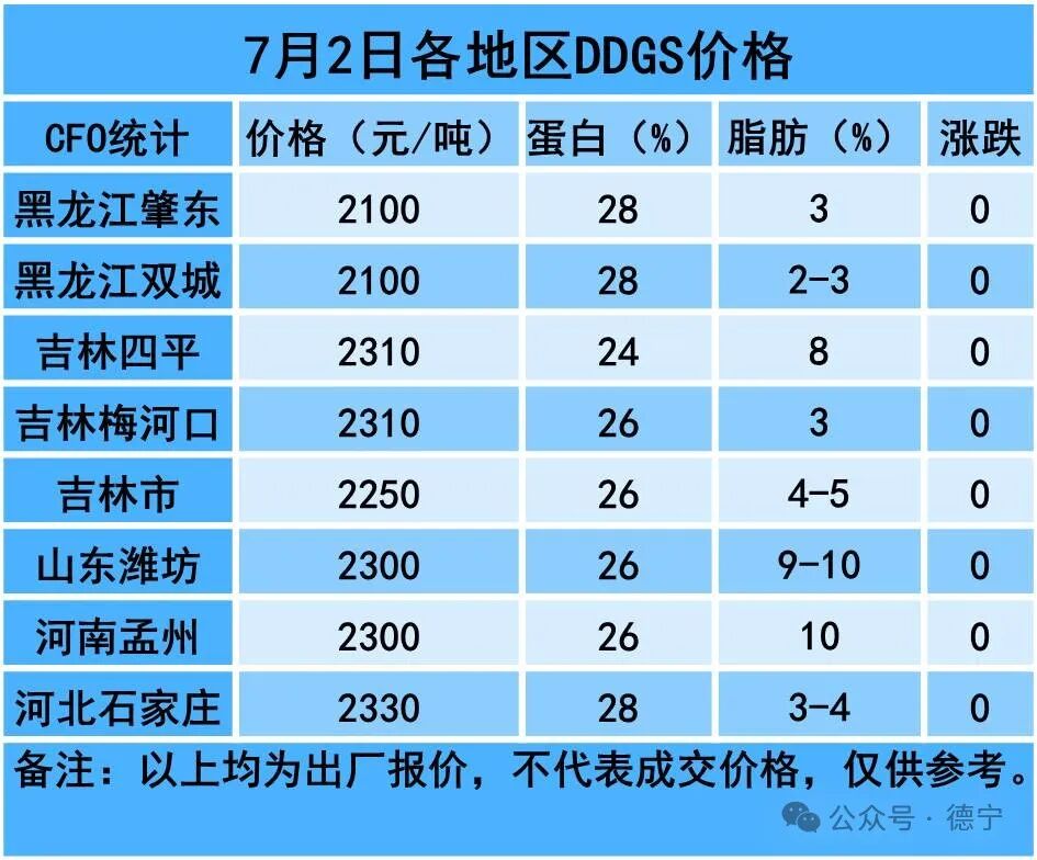 今日,DDGS价格弱稳。国内市场交投氛围欠佳,下游终端维持观望,酒精企业走货表现偏慢,部分酒精企业降价出货,市场观望心态浓厚,下游终端按需随用随采,市场缺乏利好因素支撑DDGS价格。受生产端部分酒精企业装置停机检修、玉米价格近期持续偏弱,植物蛋白粕价格持续下跌拖累等因素冲抵叠加的综合影响。7月下半月中国玉米酒精生产行业总体上将继续处于生产淡季阶段,DDGS月度产供总量将继续下降。需求端养殖及饲料生产消耗量将继续增长,总体上供需两端均对其价格存一定的利多支撑。结合强关联产品玉米及植物粕类原料价格走势,预判7月下半月-8月上半月期间大多数时候产区DDGS产品价格总体稳中略偏弱走势为主的可能性更大,8月中旬前后下半月止跌回涨几率有望逐步提高。