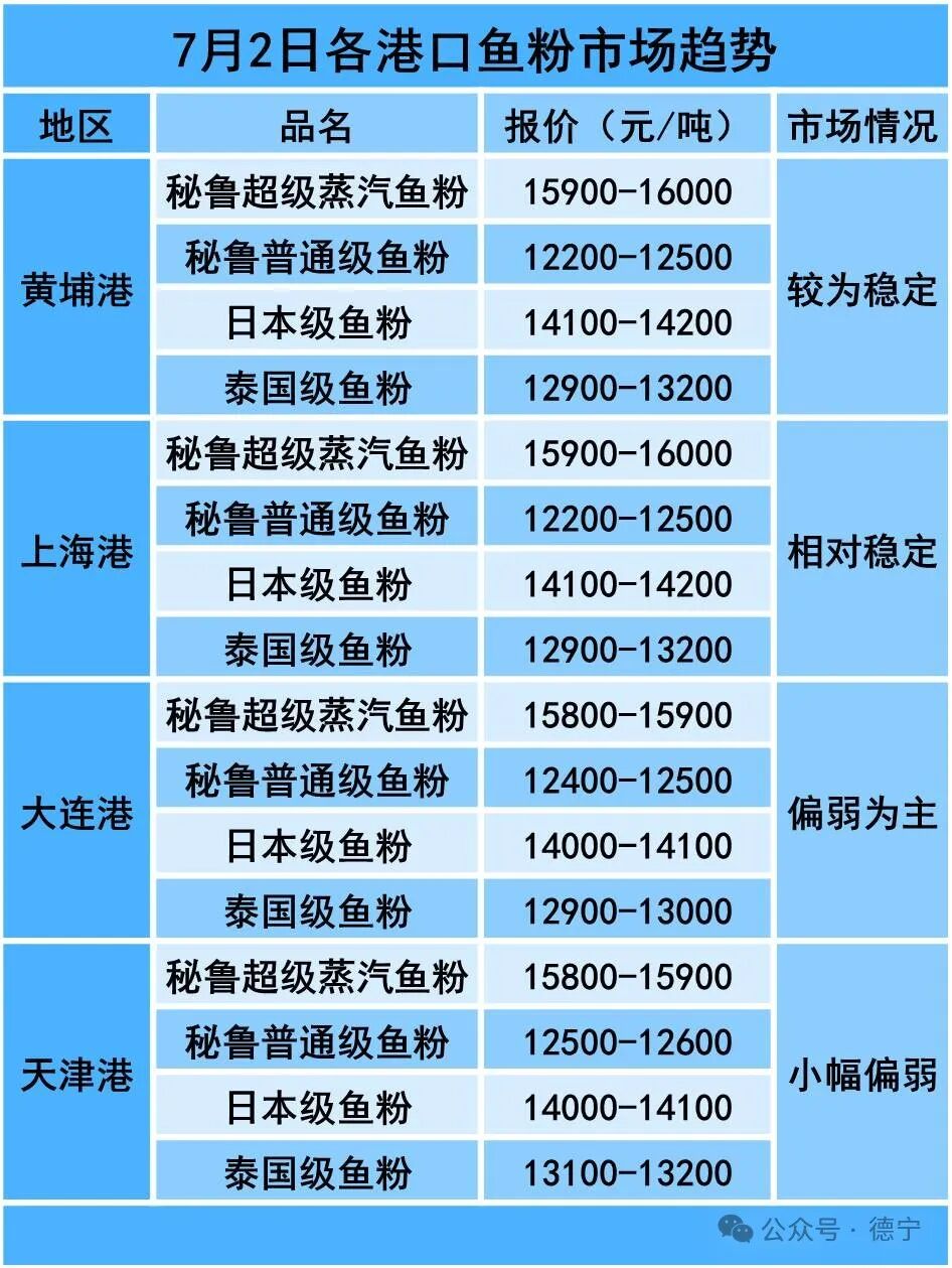 7月23日饲料原料行情:鱼粉市场稳定为主,豆粕跟随美盘大豆回升