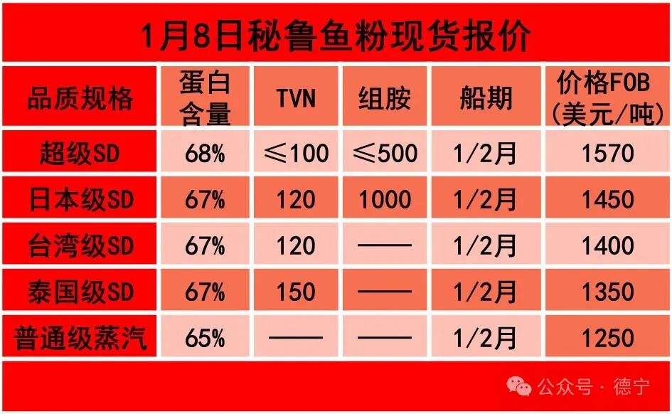 1月8日饲料原料行情:港口鱼粉库存降速放缓,豆粕产量增加