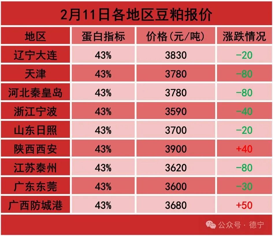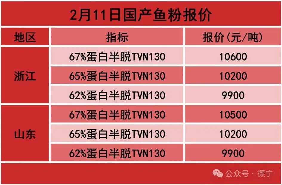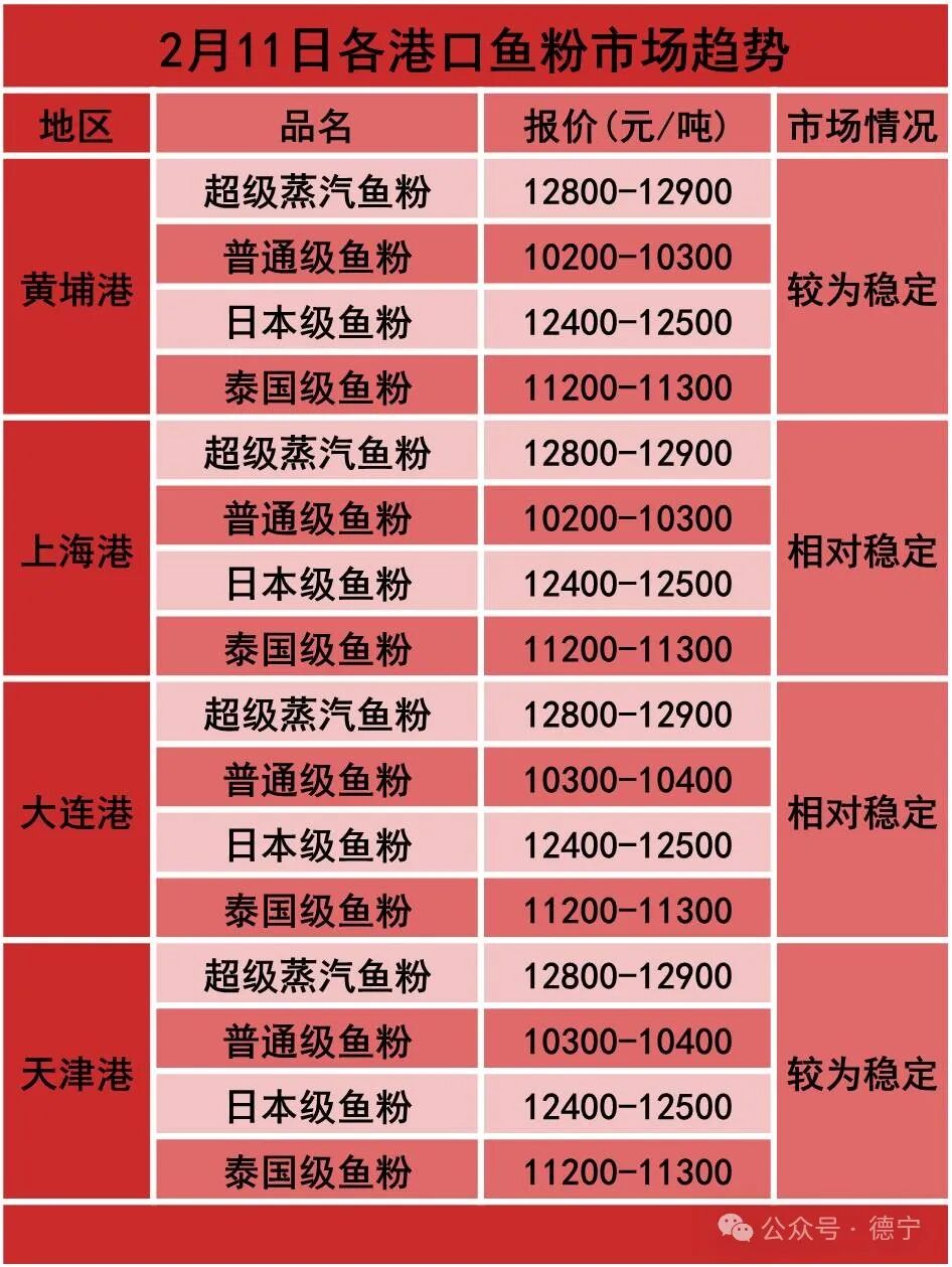 2月11日饲料原料行情:鱼粉价格偏弱稳定,豆粕部分价格强势大涨