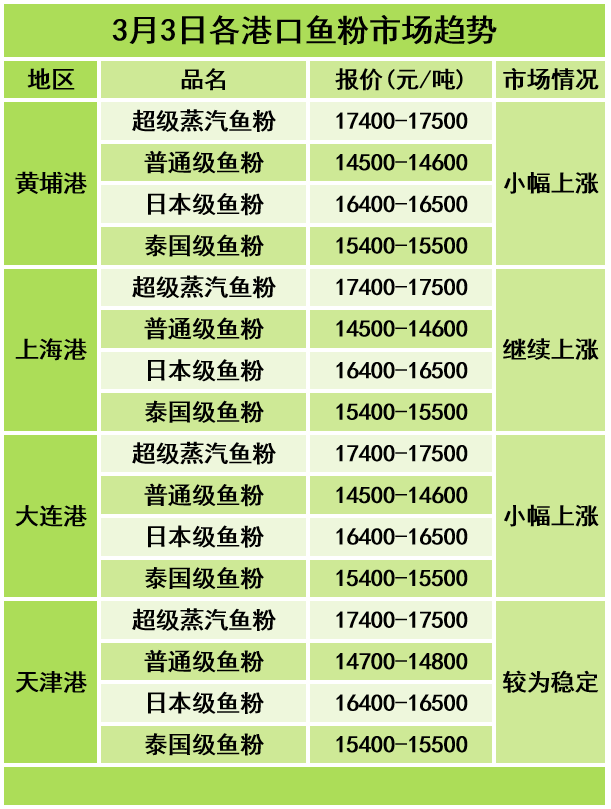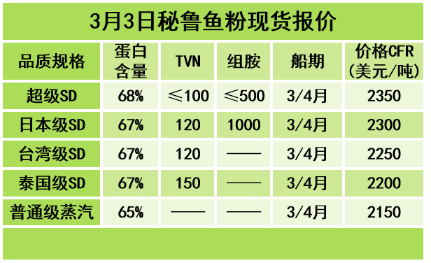 3月3日饲料原料行情:鱼粉价格继续上涨,豆粕库存增加