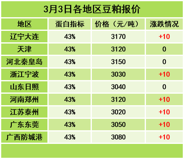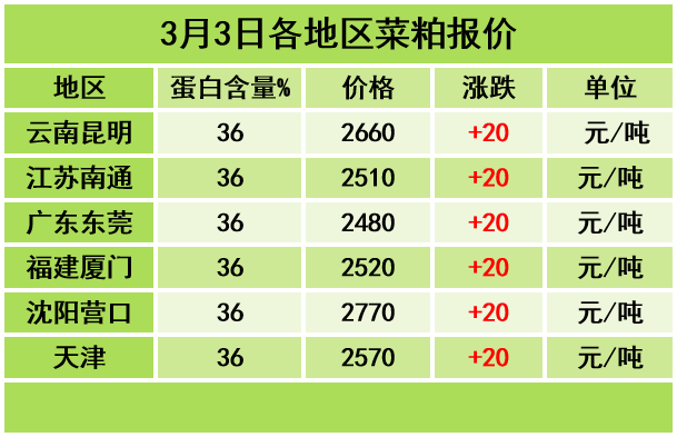 各地区3月3日菜粕报价如下: