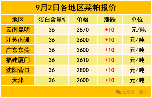 各地区9月2日菜粕报价如下: