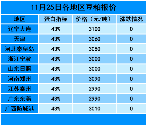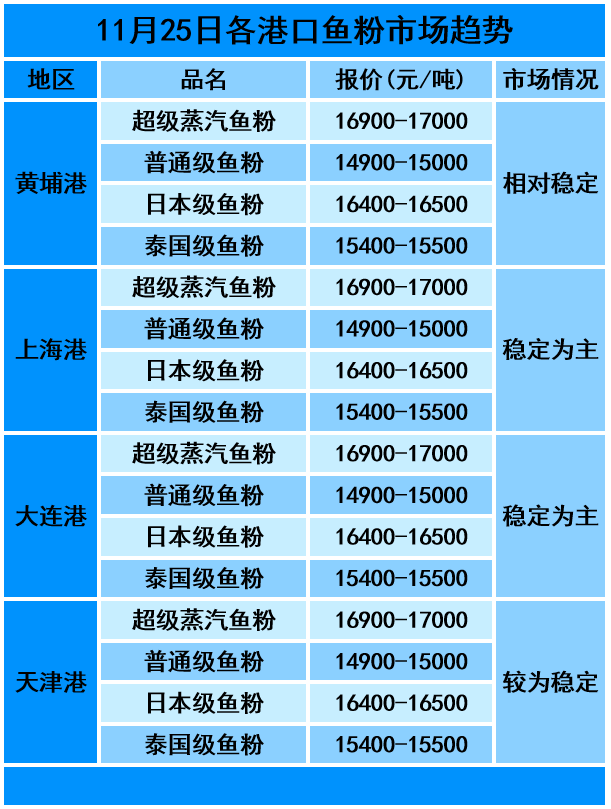 11月25日饲料原料行情:鱼粉价格稳定为主,豆粕库存充足