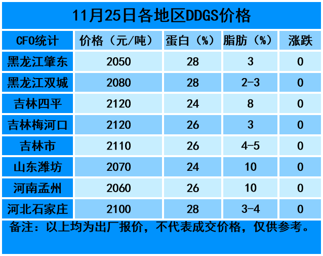 今日,DDGS价格稳定。近期终端养殖需求一般,下游市场观望心态较浓,饲料企业按需采购,市场缺乏其他利好因素刺激终端补货,多数企业消化前期库存,市场购销情绪有所降温。11月份原料玉米价格总体继续偏弱震荡走势为主,叠加其他强关联植物蛋白粕价格总体偏弱走势的影响,多方因素纠缠博弈,我们预判11月份期间大多数时候DDGS交易价格总体偏弱震荡走势为主的可能性更大,11月份月度均价环比继续下跌的可能性更大。
