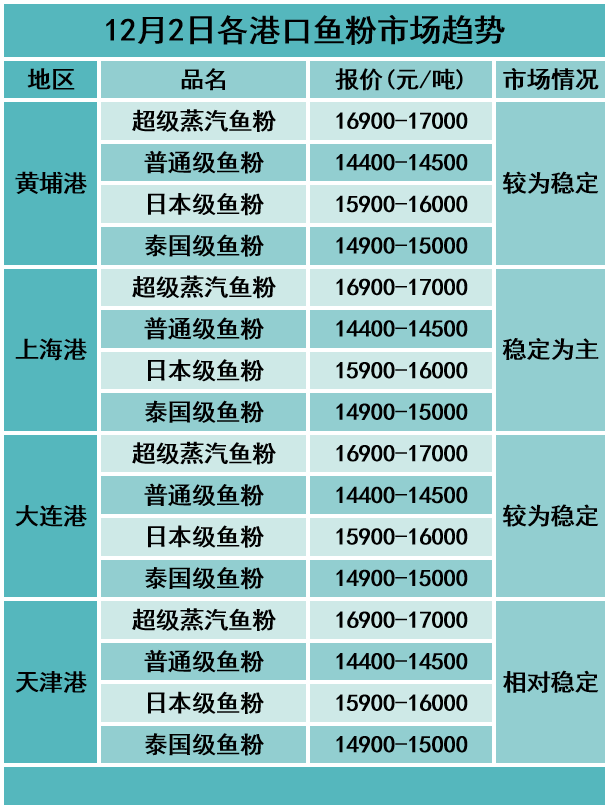 12月2日饲料原料行情:鱼粉价格稳定,豆粕库存继续增加
