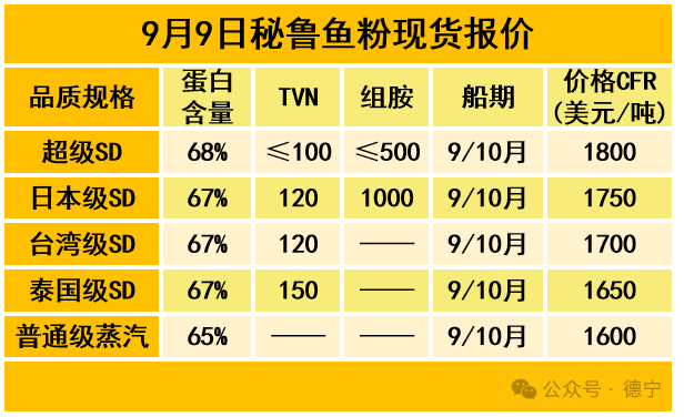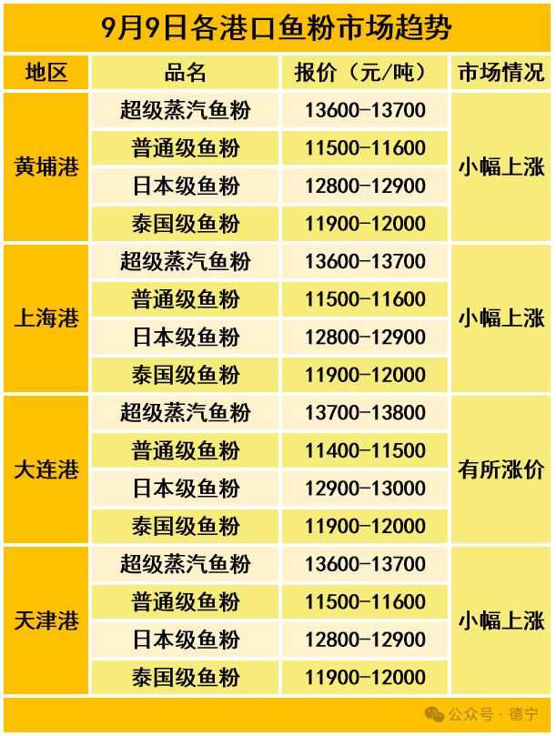 9月9日饲料原料行情:鱼粉价格小幅上涨,豆粕价格上涨受限